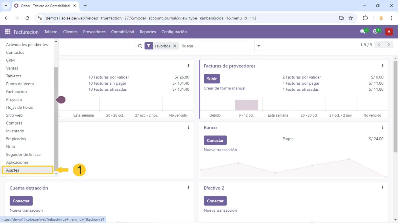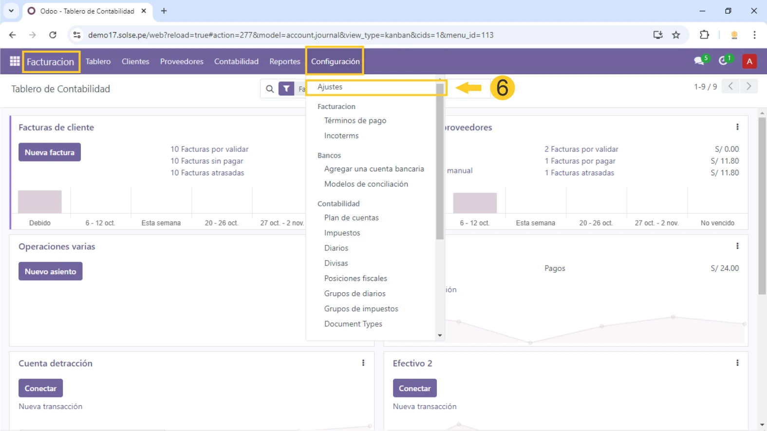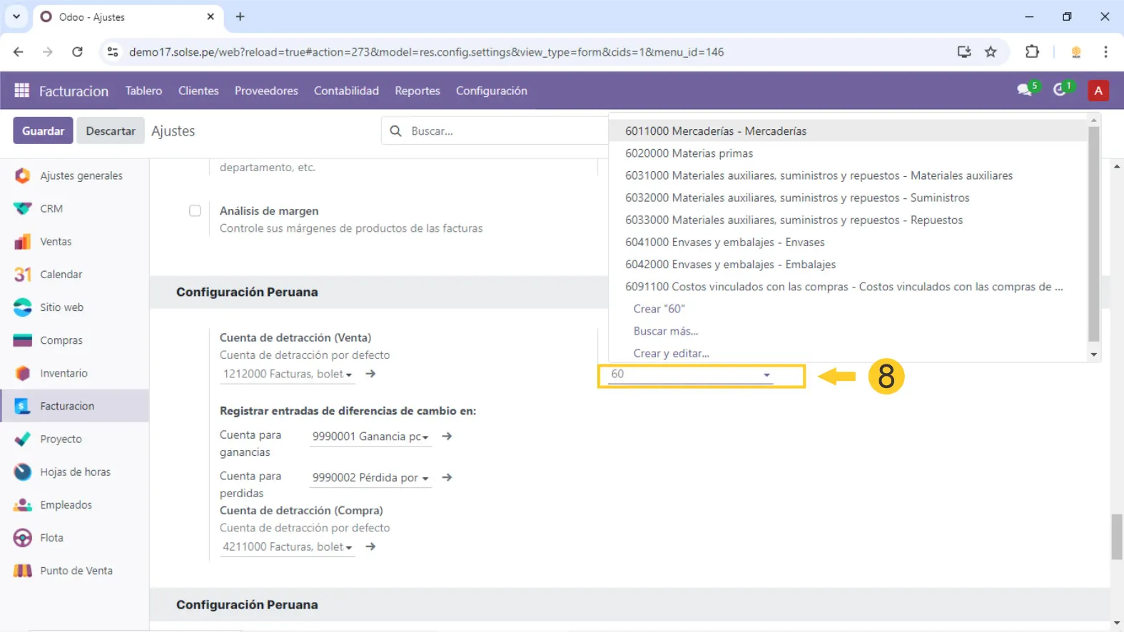 7. Ve a la sección Configuración Peruana y busca el campo Cuenta de Retención.