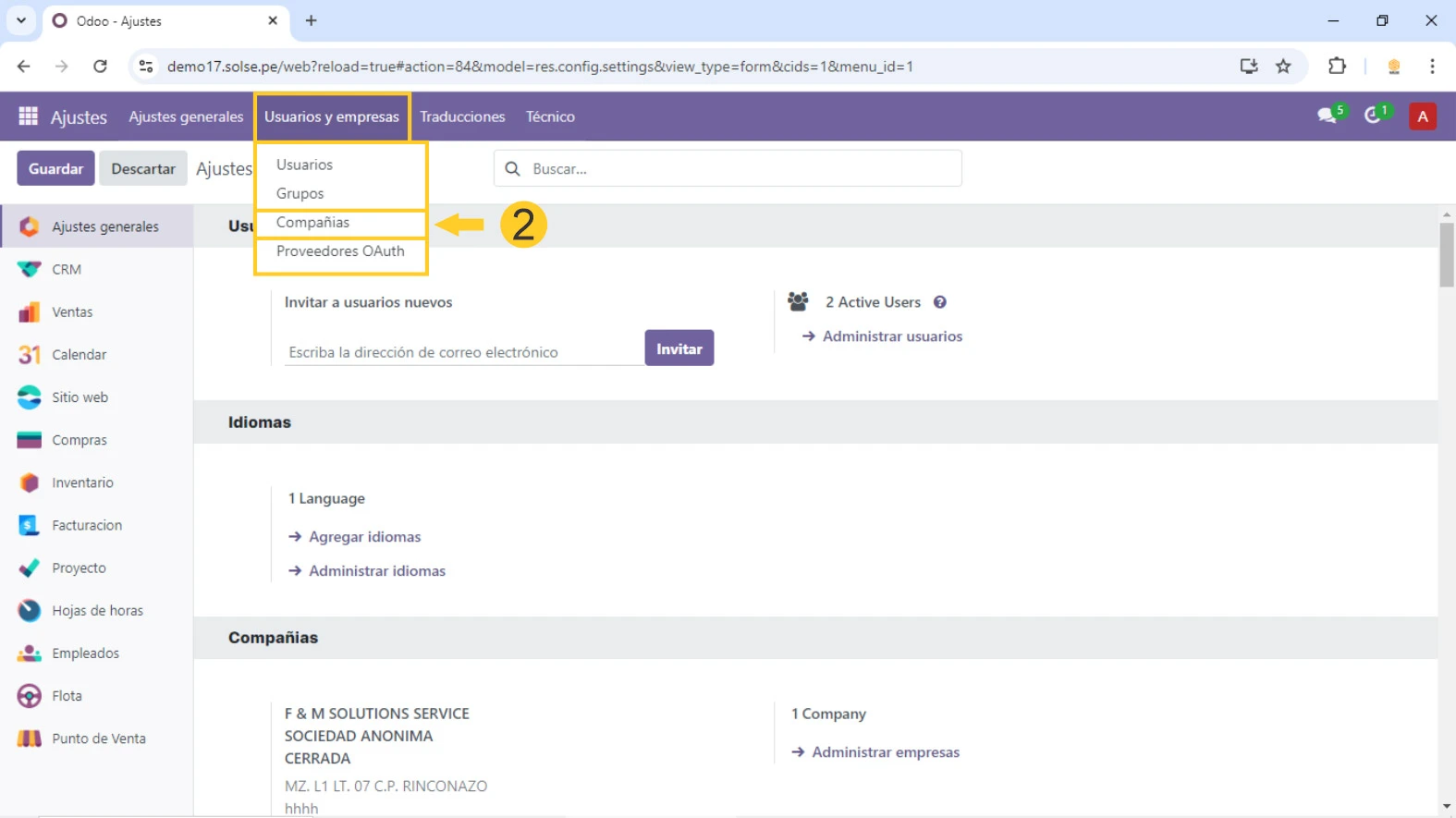 2. Luego, dirígete a Usuarios y empresas y selecciona Compañías.