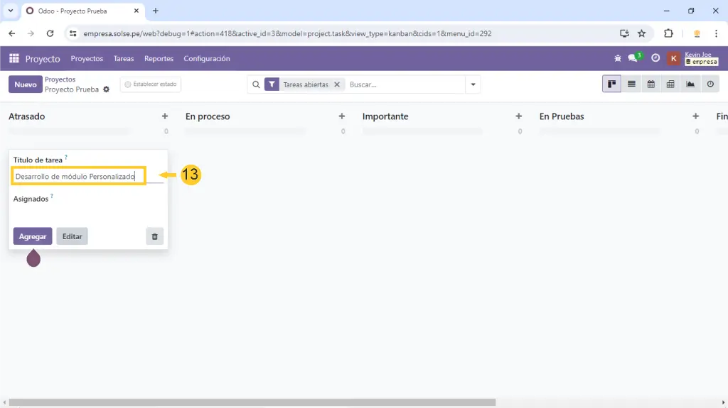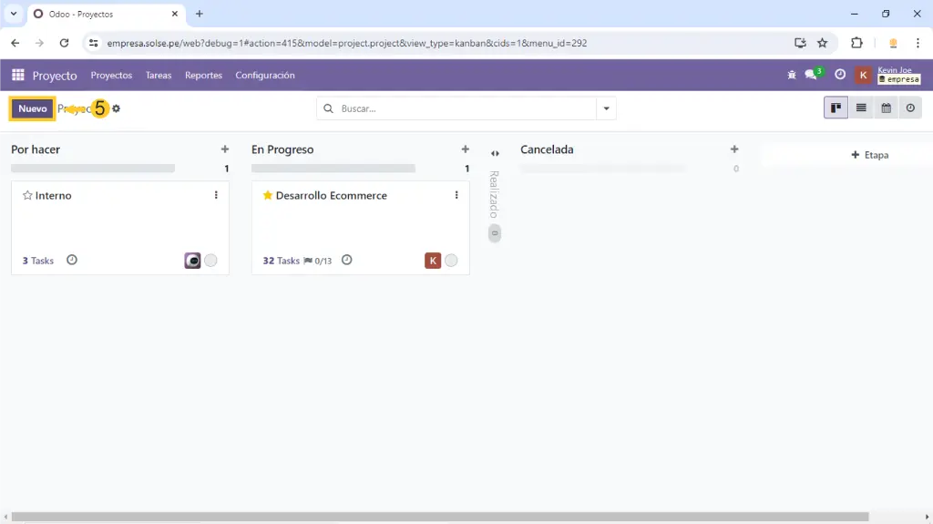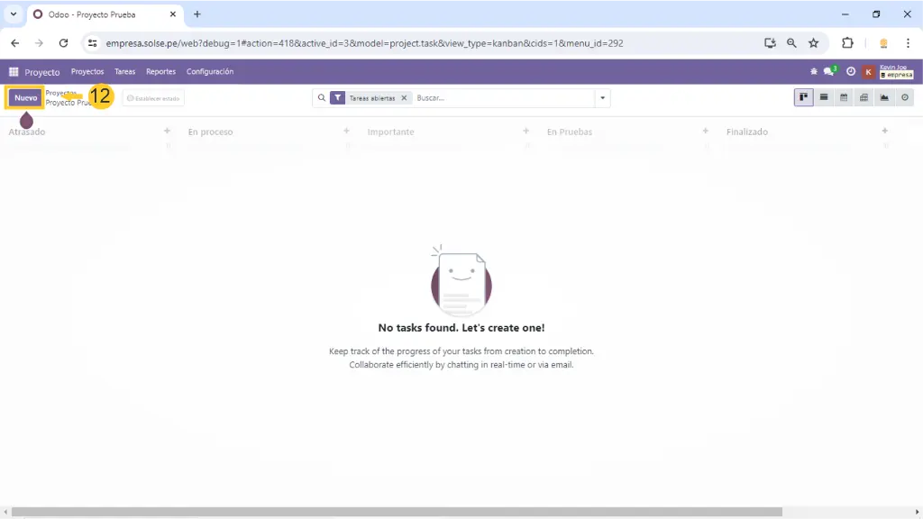 12) Añadimos una nueva tarea para el proyecto dando clic en Nuevo.