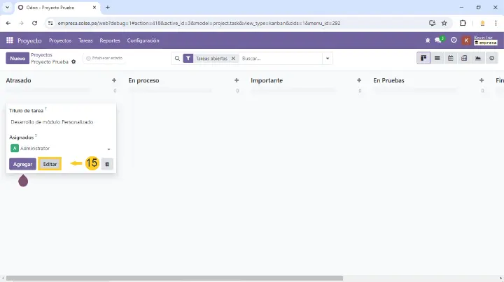 15) Damos clic en "Editar" para poder seguir colocando más información a la tarea.