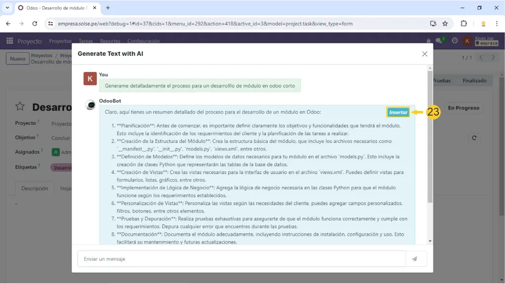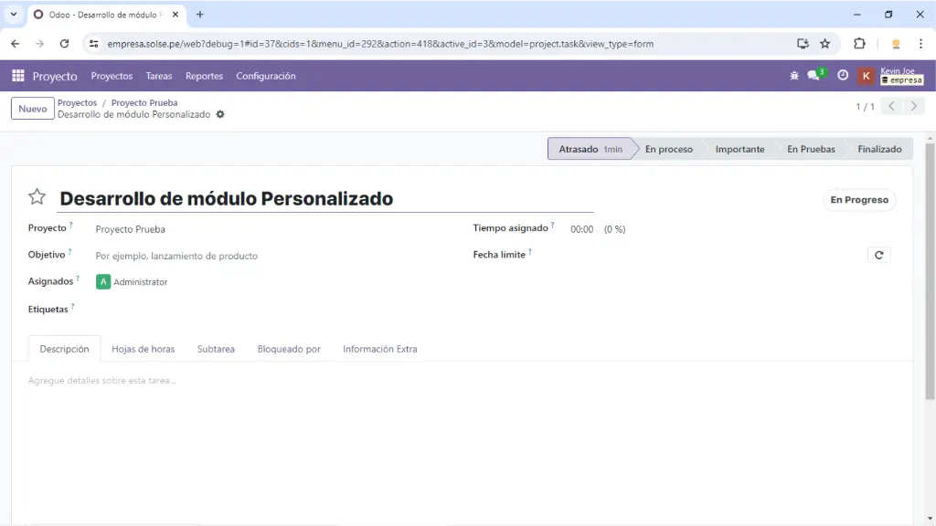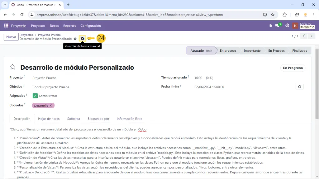 En este artículo te mostraremos cómo generar un proyecto nuevo y gestionar tareas en Odoo 17, moviéndolas a través de diferentes etapas hasta su finalización. (PARTE 2)