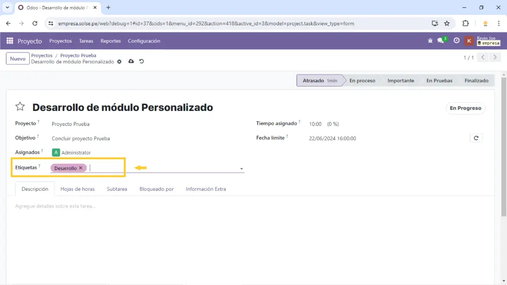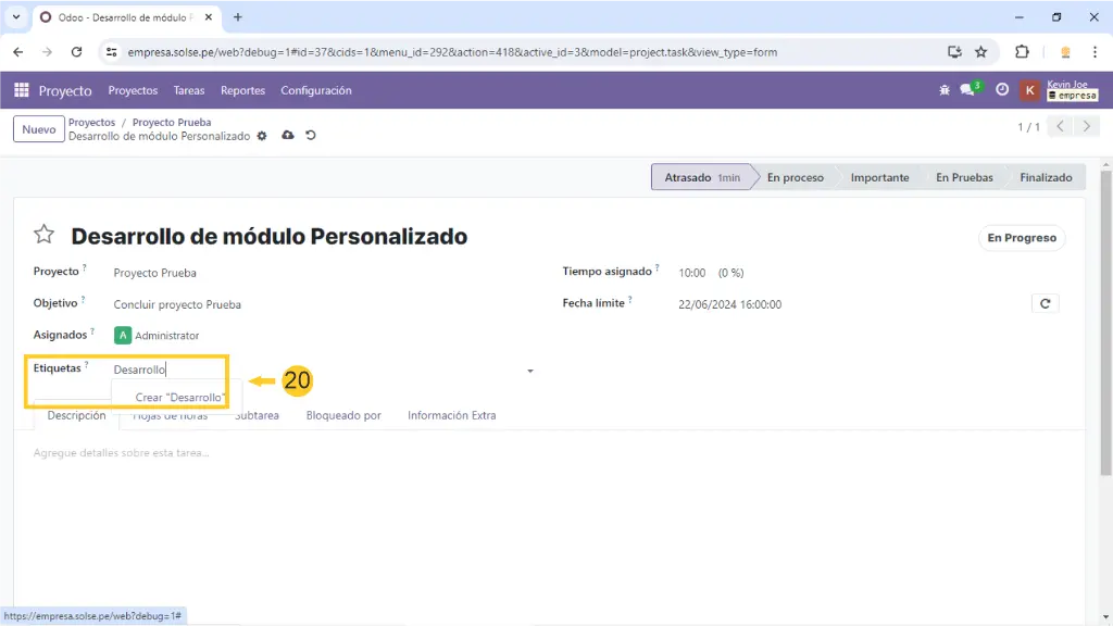 20) Podemos agregar "Etiquetas", en este ejemplo será "Desarrollo".