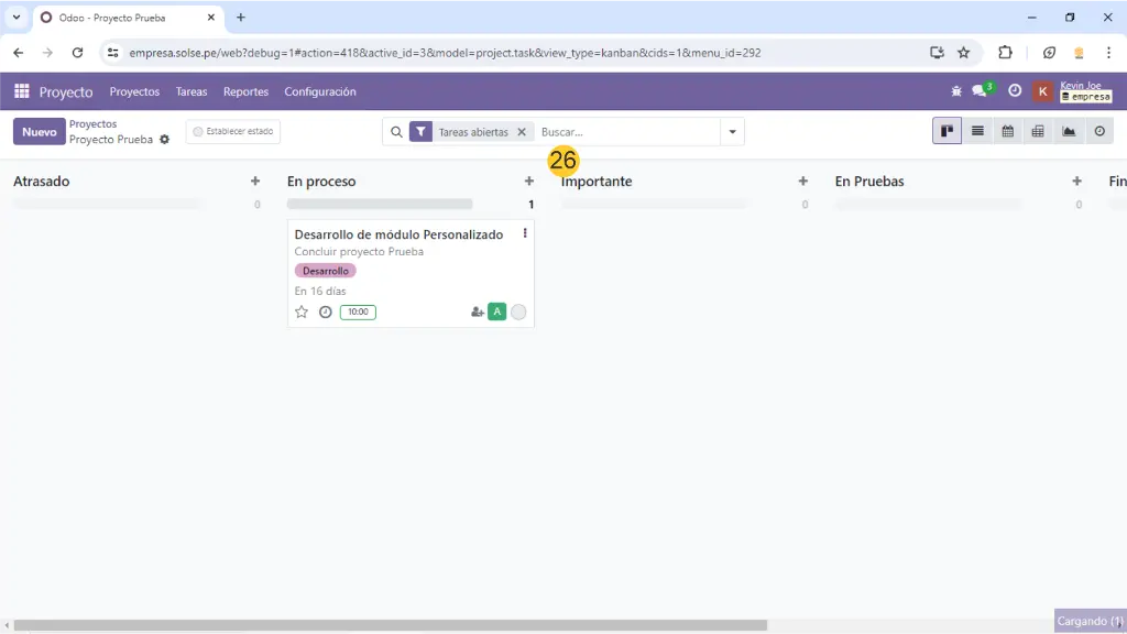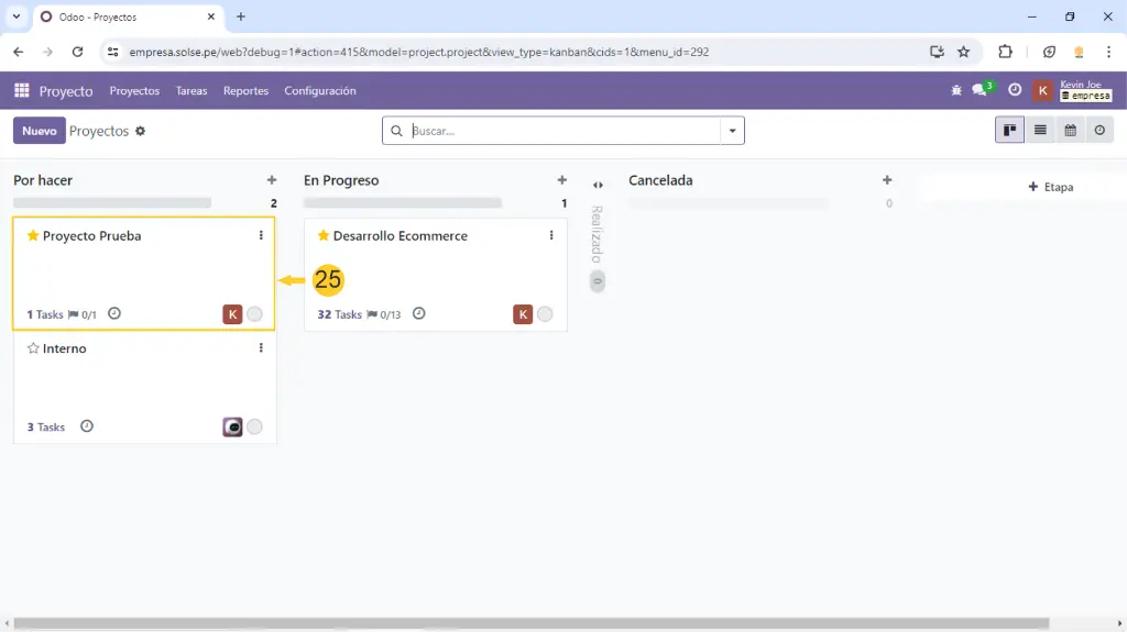 26) Si entramos al proyecto observamos las tareas que se han creado, podemos ir cambiándolo de etapa conforme se va avanzando.