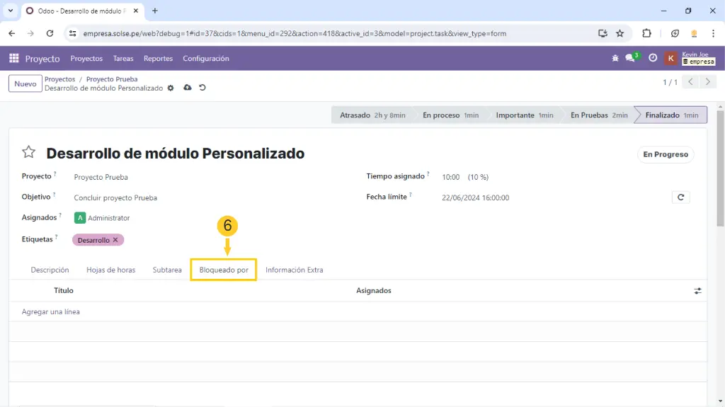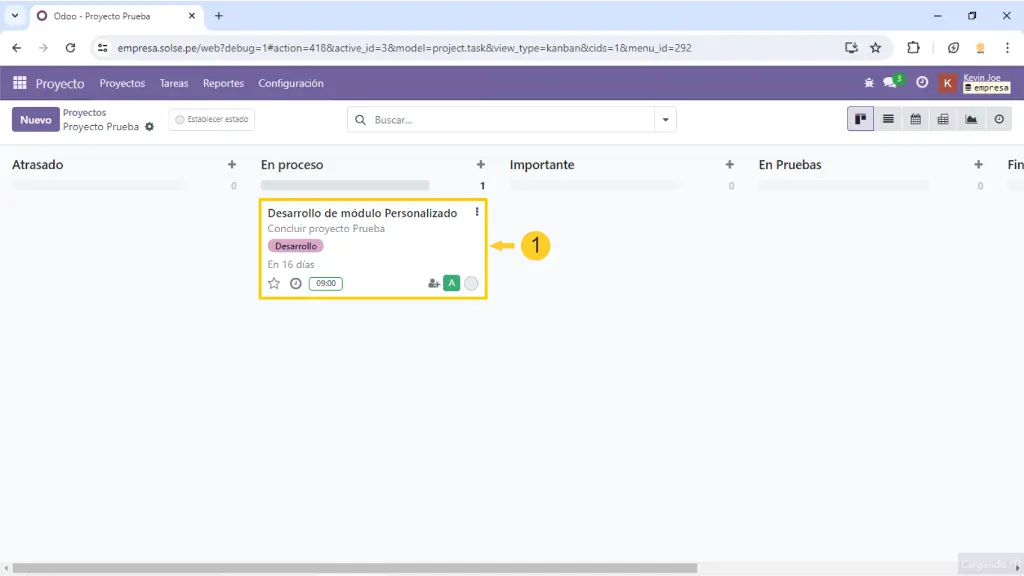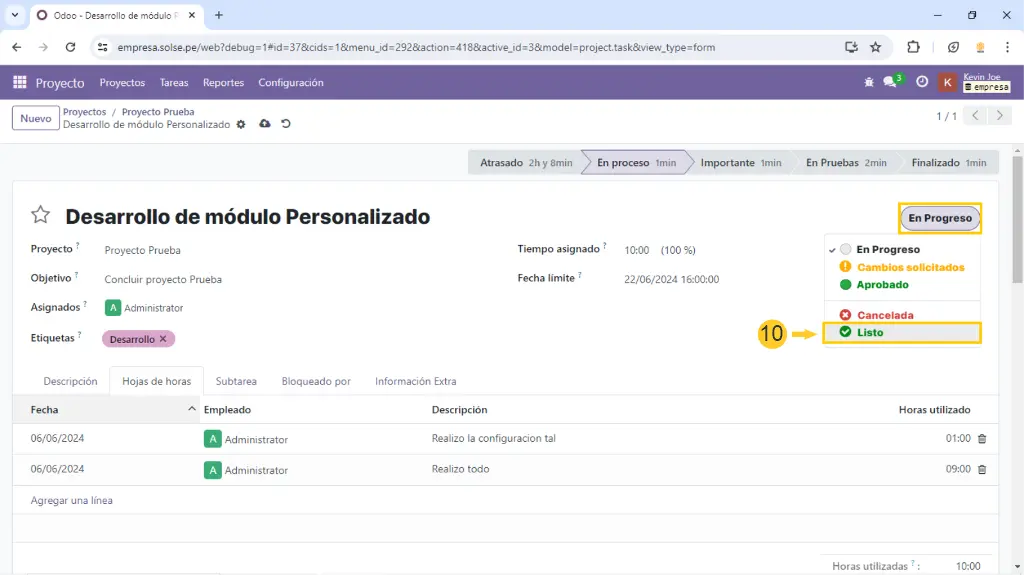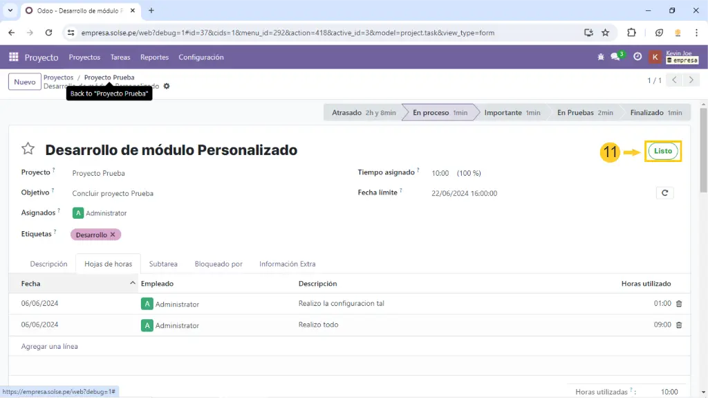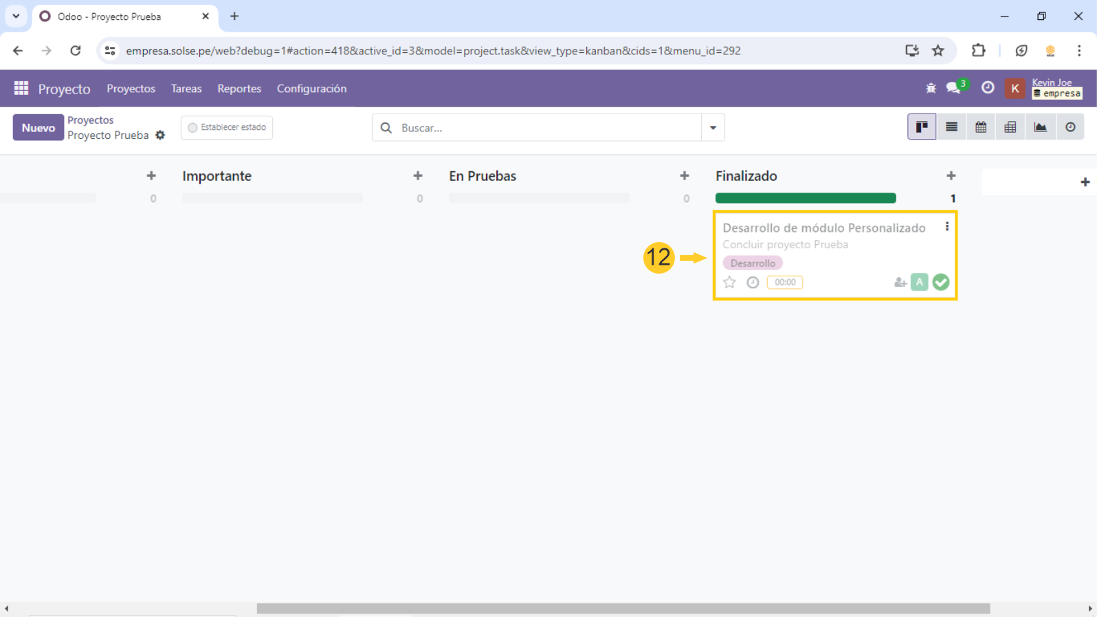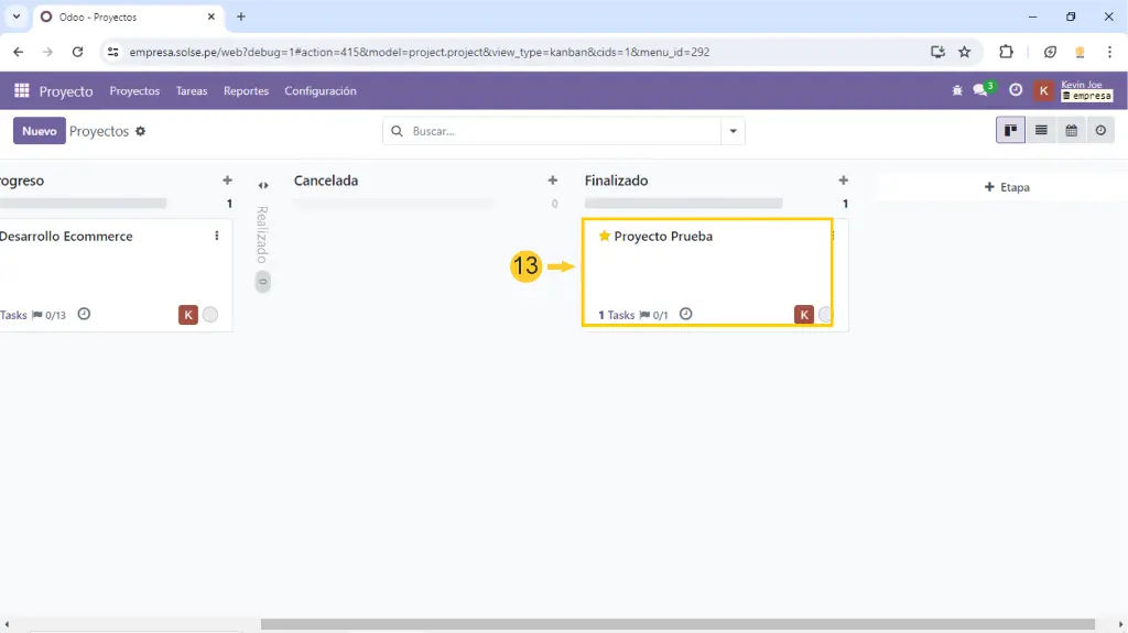 13) Cuando ya realizamos todas la tareas del proyecto lo pasamos a finalizado.