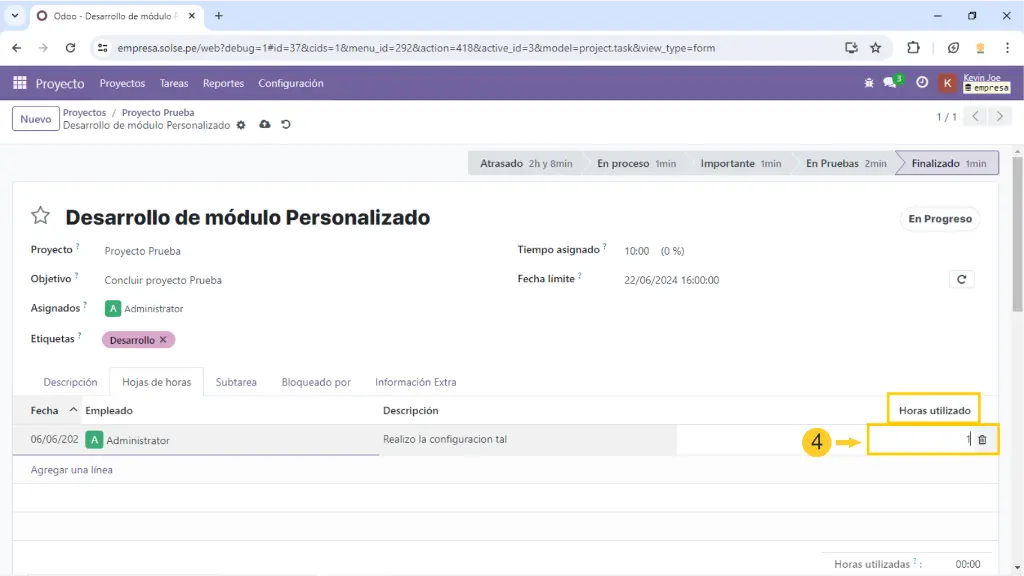 1) Nos dirigimos a la tarea que deseamos colocar más datos.